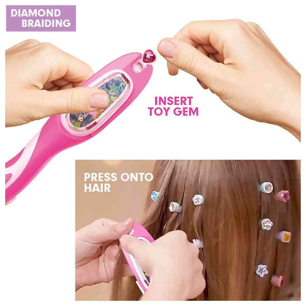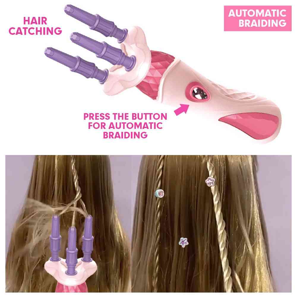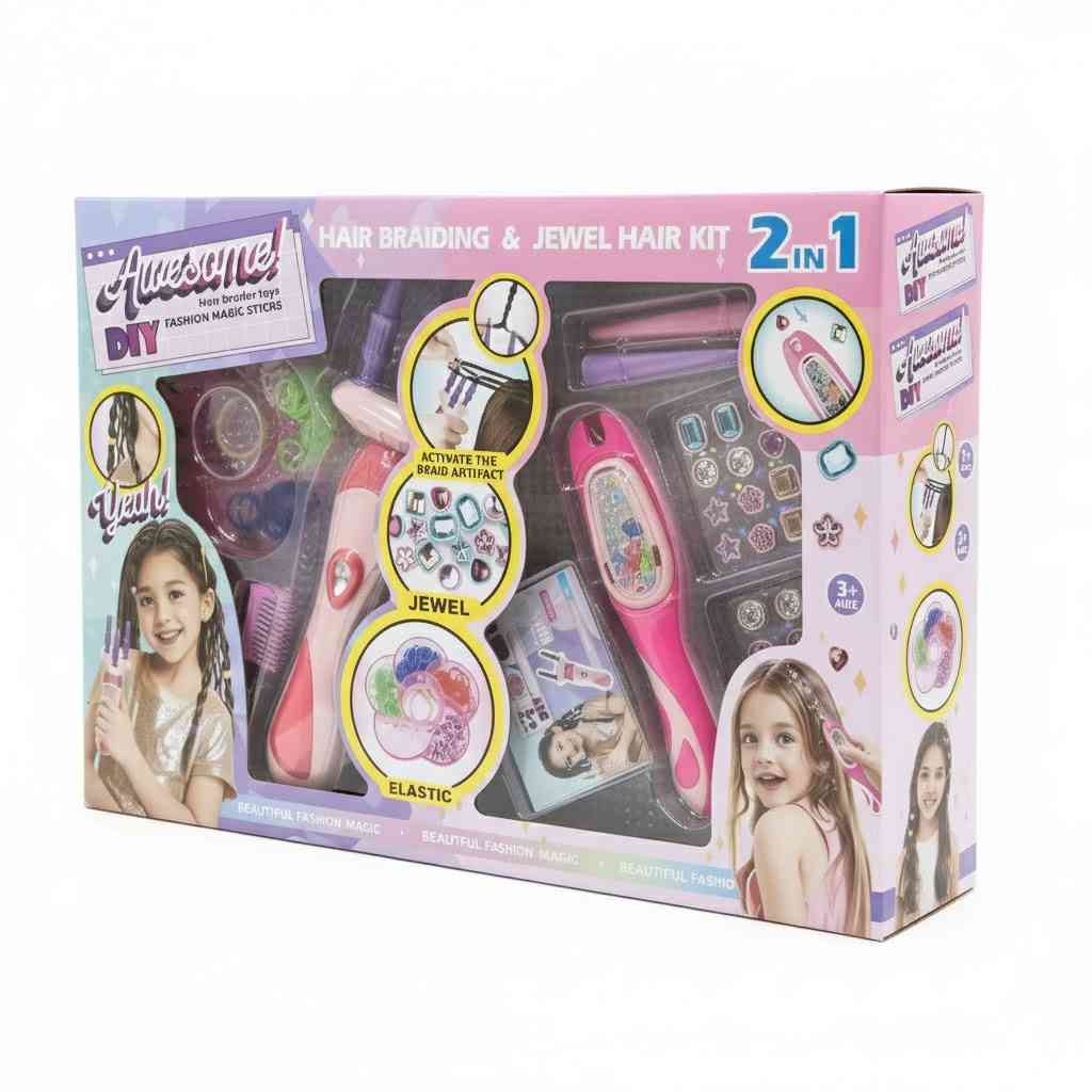 Create stunning hairstyles with the 2-in-1 Hair Braiding & Jewel Styling Kit! This fun and versatile set includes a braiding tool, colorful elastic bands, shiny hair jewels, and accessories to craft stylish braids and add sparkling decorations.