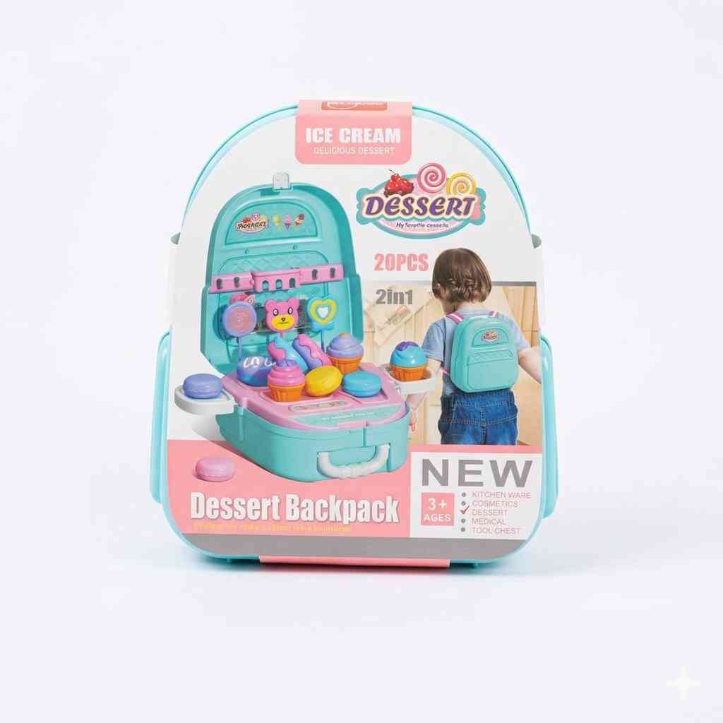 The Dessert Backpack Playset is a smart 2-in-1 toy that transforms from a cute backpack into a full ice cream play station 🤩