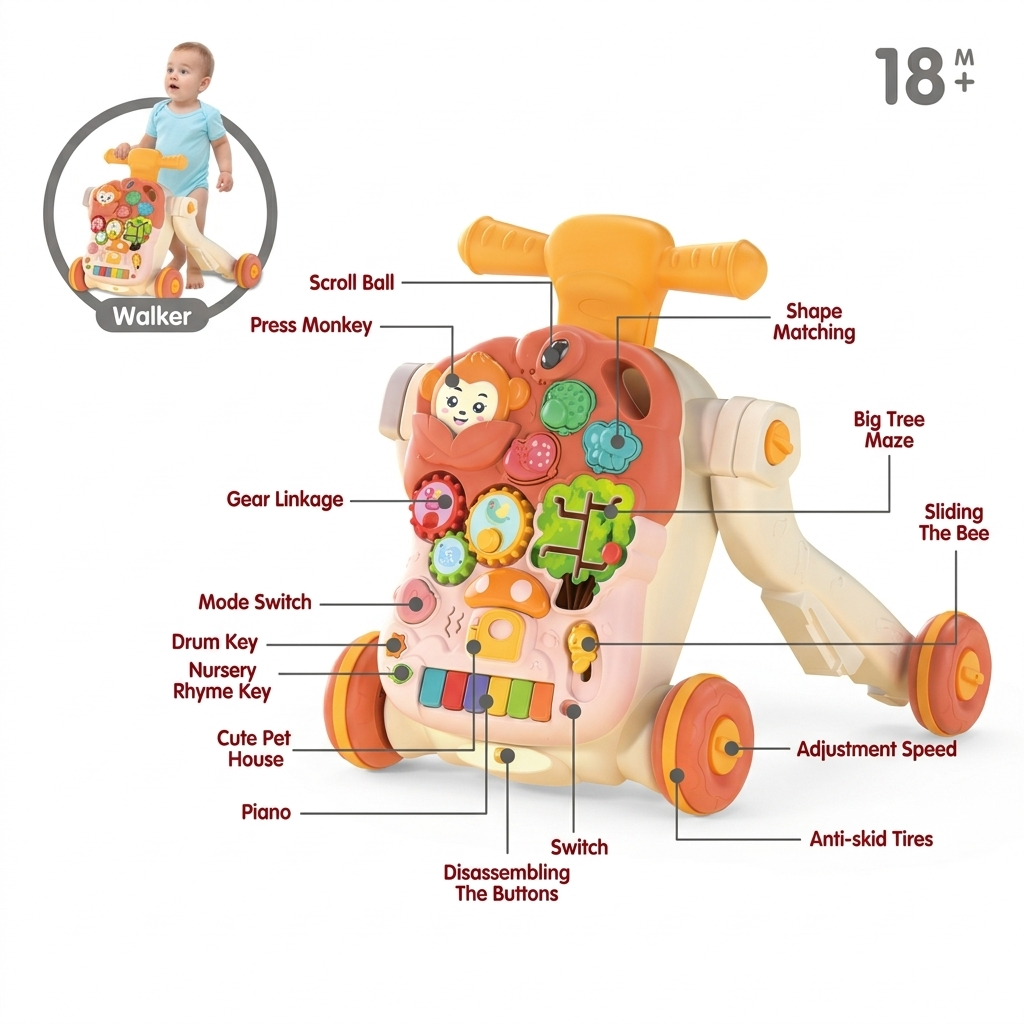 This 2-in-1 Multifunction Baby Walker easily converts into an activity table—combining walking support with interactive play.