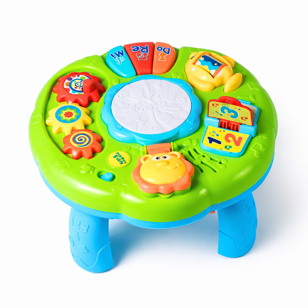 An interactive musical learning table designed to stimulate your baby’s senses and support early development. Packed with colorful buttons, spinning gears, musical keys, and playful elements, this table encourages exploration and hands-on learning.