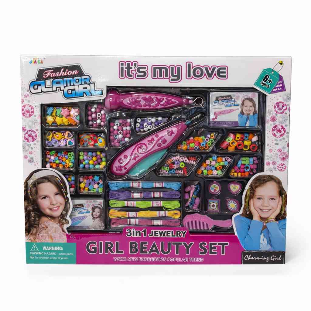 A complete jewelry-making set that offers a fun and creative experience for kids.