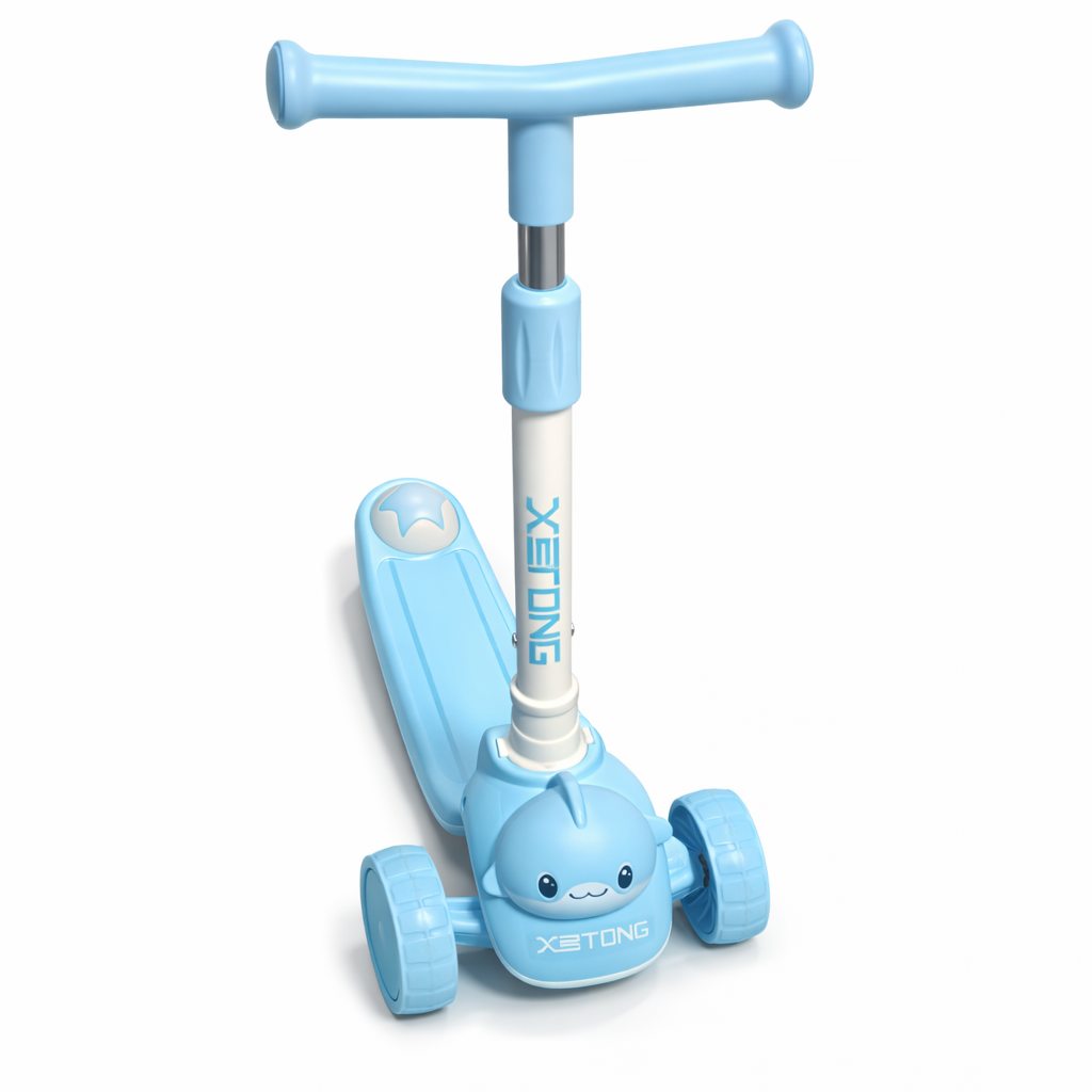 This 3-Wheel Kids Scooter – Sky Blue Cartoon Design combines stability and style for young riders.