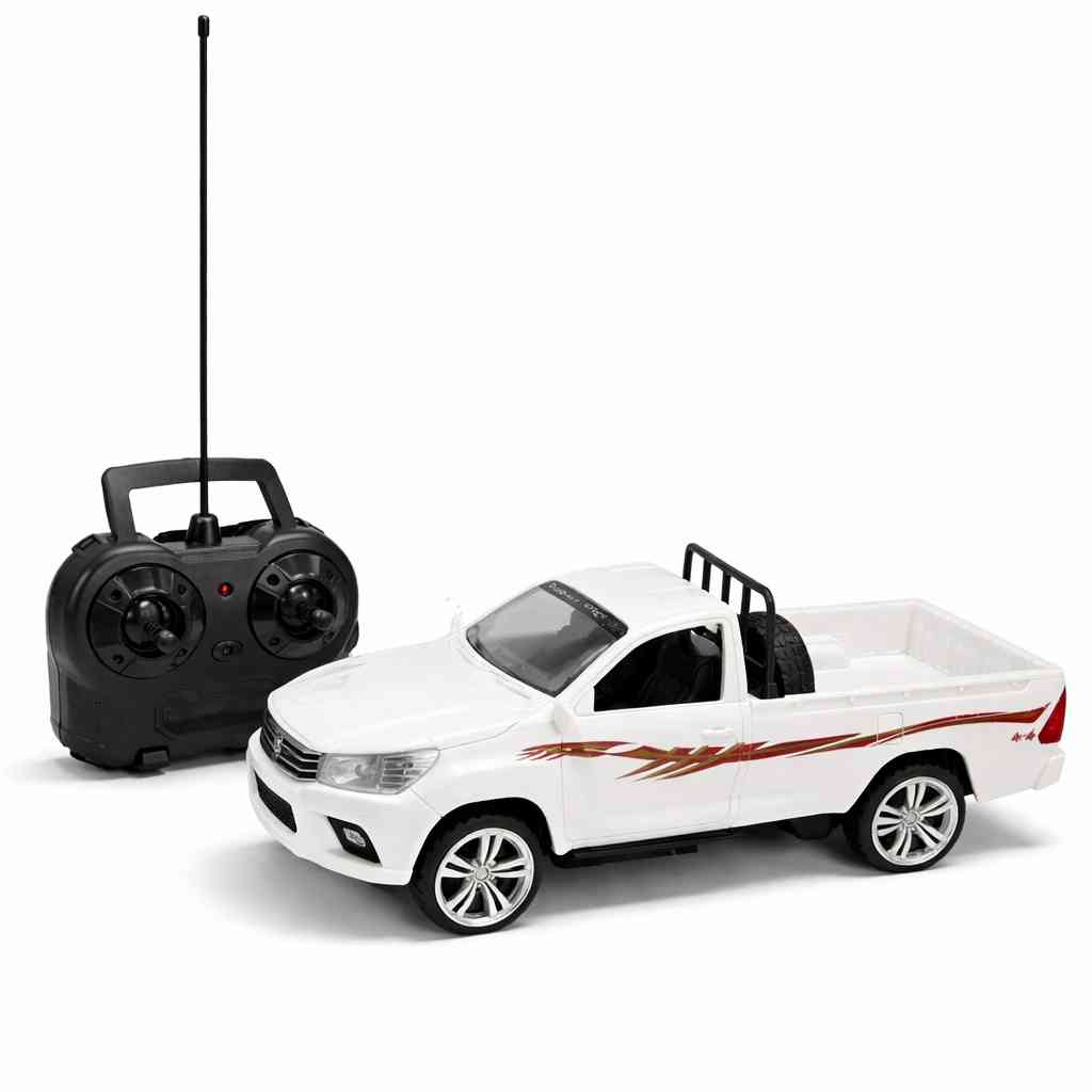 A realistic and stylish 1:14 scale pickup RC car that offers an exciting driving experience for kids indoors or outdoors. Designed to resemble real pickup trucks with a sturdy body and wide wheels for stable movement.