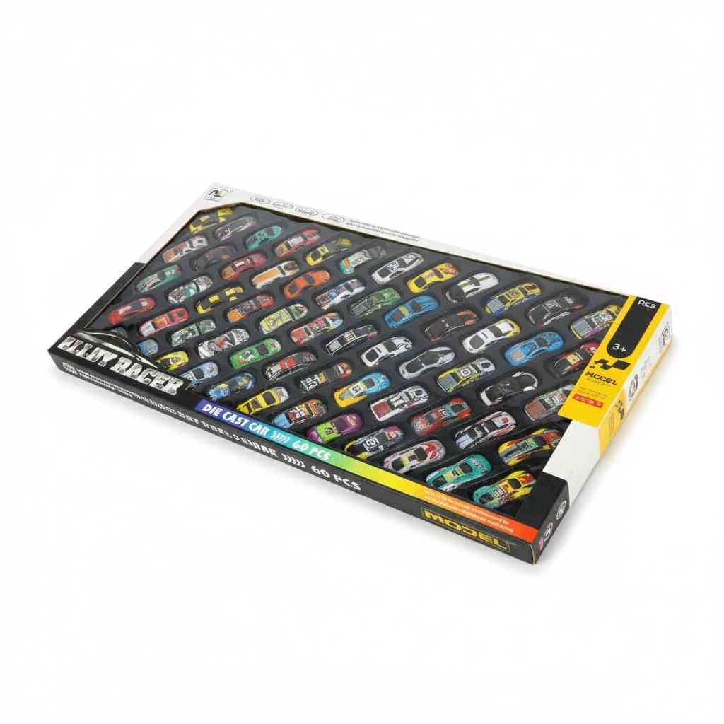 60-Piece Alloy Die-Cast Racing Car Set – Mini Pull-Back Fun Get ready for high-speed action with 60 mini die-cast pull-back cars! Featuring a variety of colors and designs, these little racers are perfect for races, collections, or party favors.