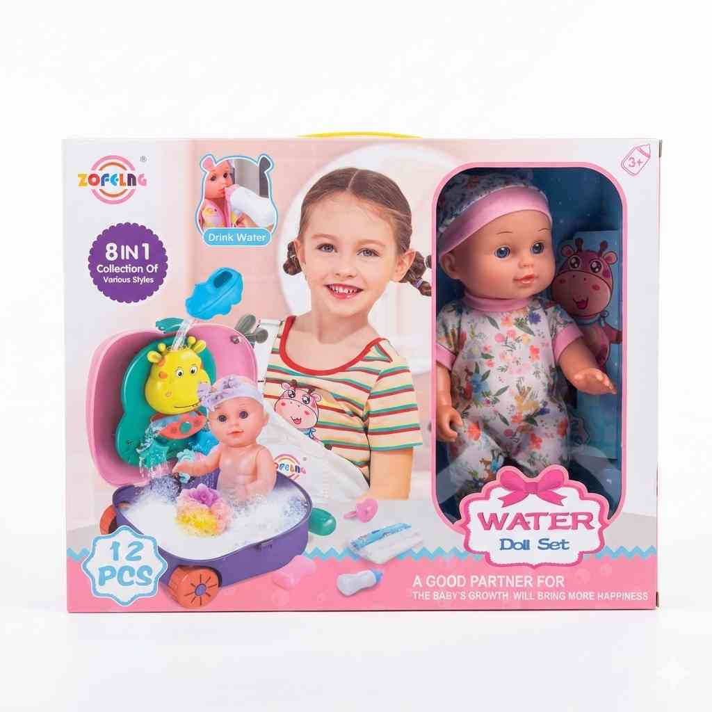 8-in-1 Baby Doll Water Play Bath Set with Accessories (12 PCS) Pink