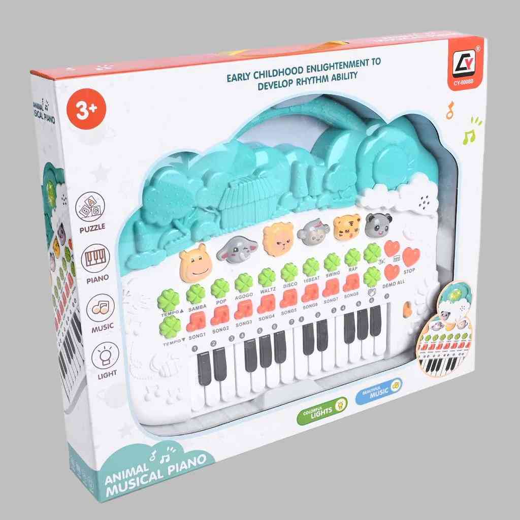 The Animal Musical Piano is a colorful and interactive keyboard designed to introduce young children to music in a fun and engaging way. It features animal sound buttons, cheerful melodies, and bright light effects that respond as kids play. With multiple music modes, rhythm styles, and easy-to-press piano keys, it helps develop early musical sense, hand-eye coordination, and listening skills. The cute animal design keeps children entertained while encouraging creativity and learning through play. Made from safe, durable plastic, it is perfect for toddlers and preschoolers aged 3 years and above.