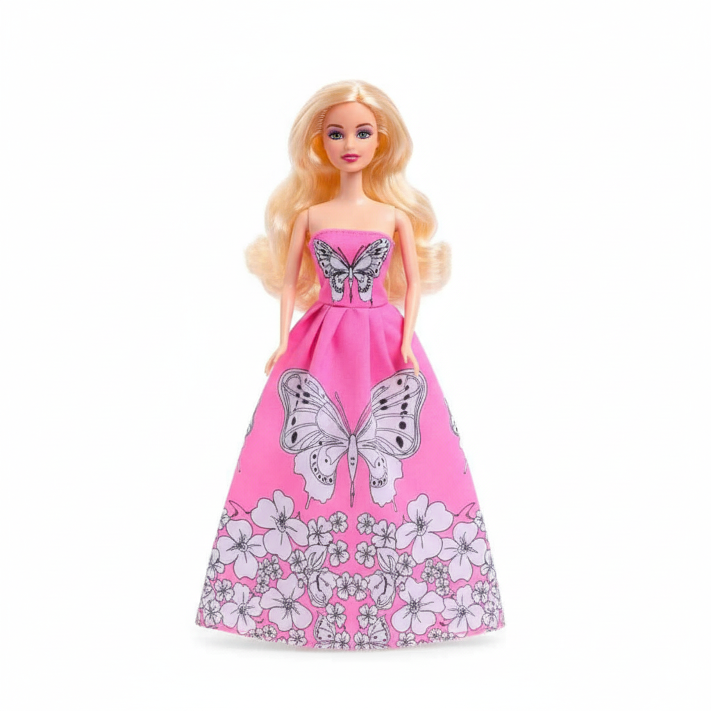 The Girl Stylish DIY Doll Set lets kids express their creativity by designing and coloring their own doll dresses. The set includes a stylish doll, two fashion outfits with black-and-white designs for coloring, colorful markers, a hairbrush, and accessories. It’s a fun and interactive way for children to explore fashion design and imaginative play. Perfect for young fashion lovers aged 3 and up.