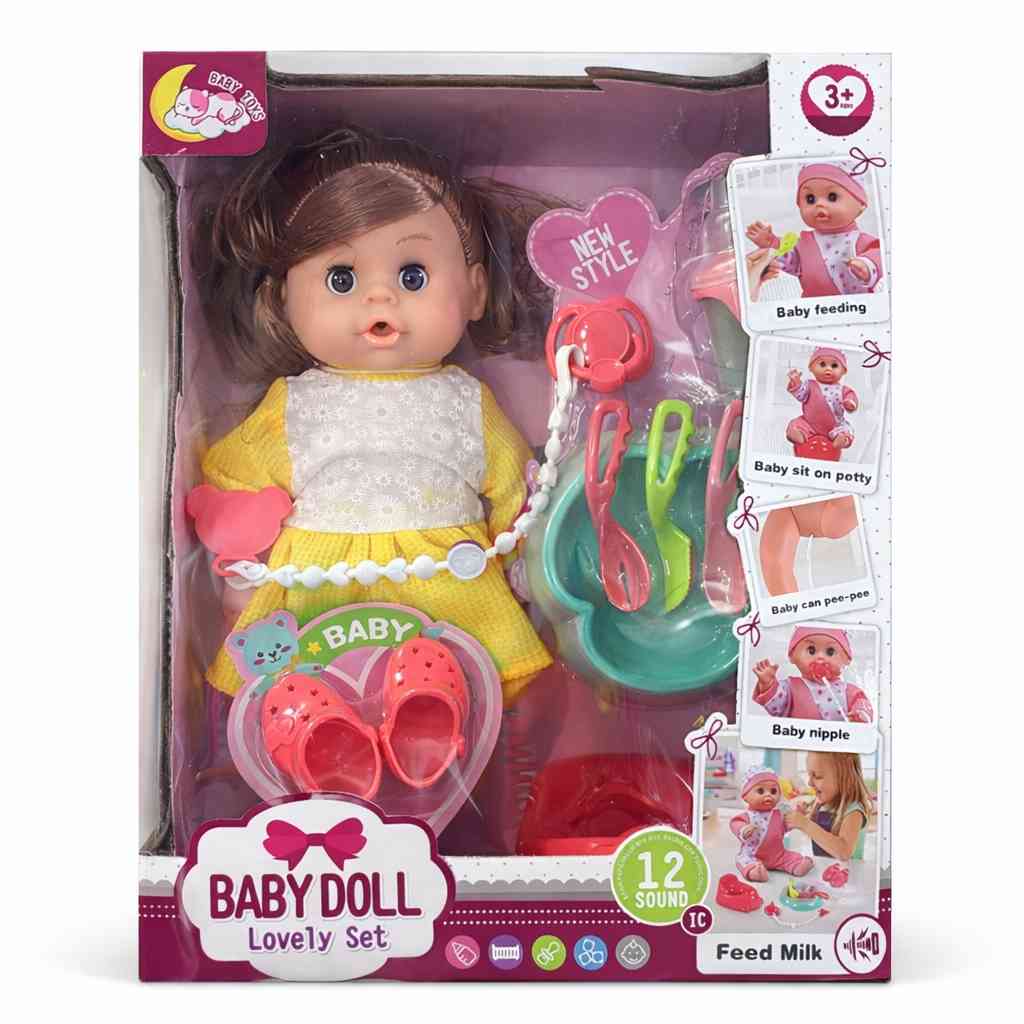 Baby Doll Care Set with Accessories & Sounds – Interactive Play Toy - Yellow