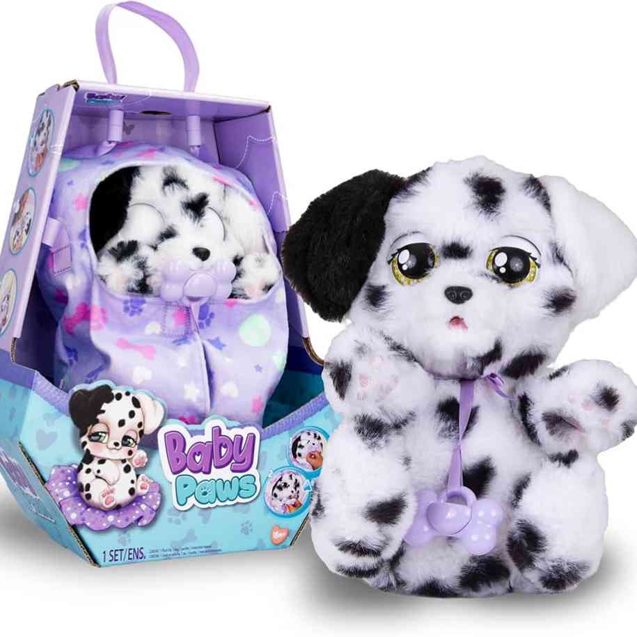 - Take out the pacifier to see them open their eyes and make sounds. - Convert the blanket into a bag and use the handle to take your puppy anywhere you go. - Not only is this puppy perfect for imaginative play, he's also super soft and cuddly, perfect for snuggling. - Contents: 1 x Baby Paws Dalmatian, 1 x pacifier and 1 x personalized blanket. - Age Range: 18 months+