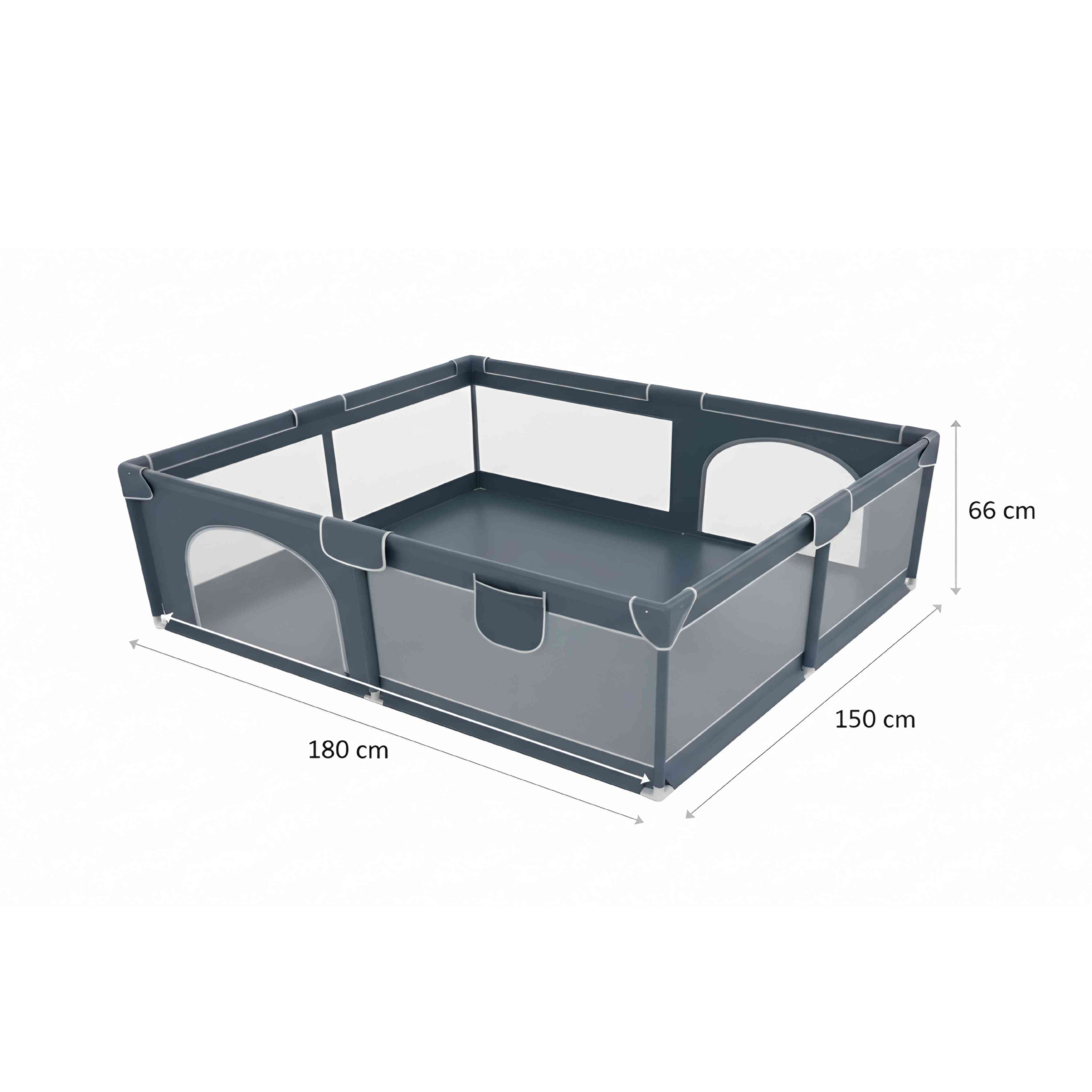 Spacious baby playpen made with strong and safe materials. Includes 50 colorful balls for fun and active play. Features mesh sides for visibility, a zippered door for easy access, and a sturdy frame for safety. Easy to assemble, clean, and perfect for both indoor and outdoor use.