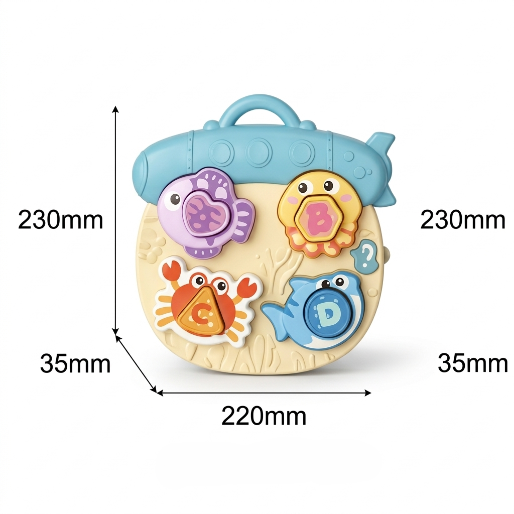 This shape recognition music toy helps children learn shapes and letters through sounds and interactive play