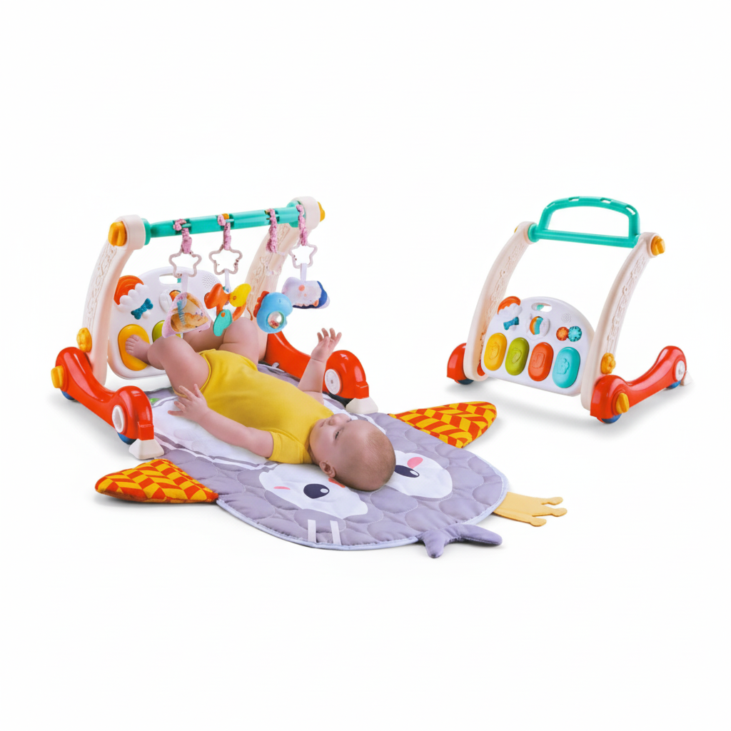 Playful pink mat and stroller combo for cuddly comfort and fun time.