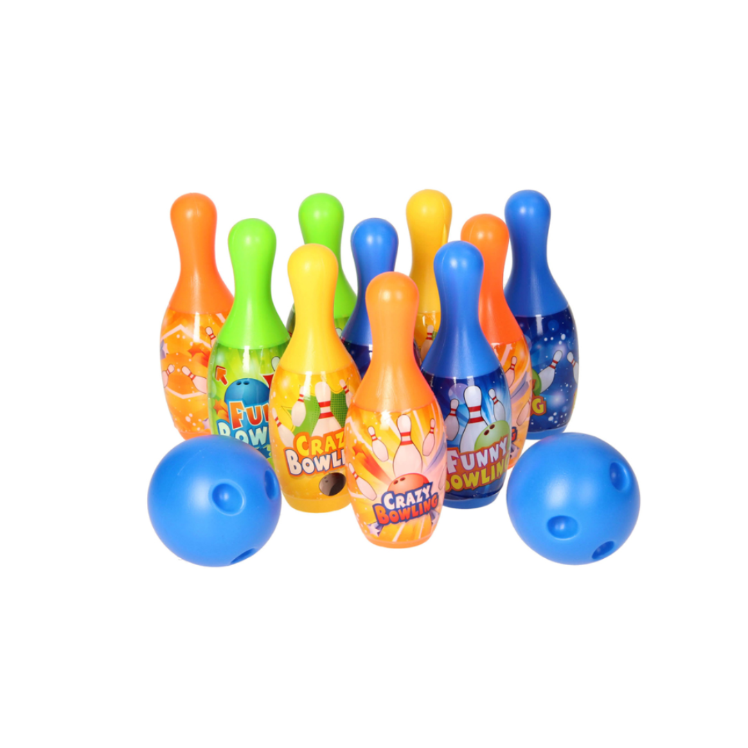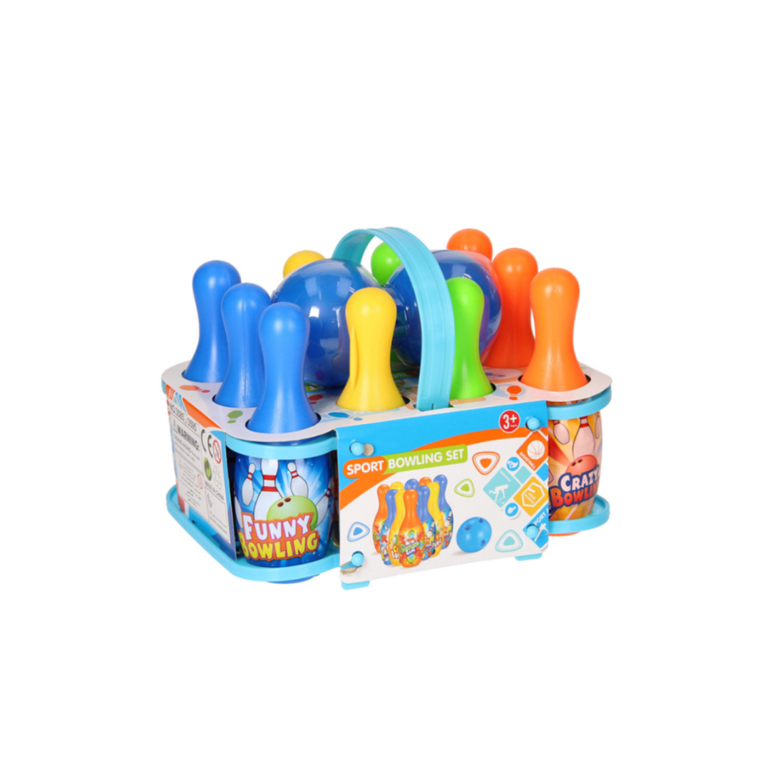 A playful bowling set with bright pins and balls, perfect for indoor or outdoor fun. Easy to carry with a handy case, it brings exciting games and active play for kids ages 3+.