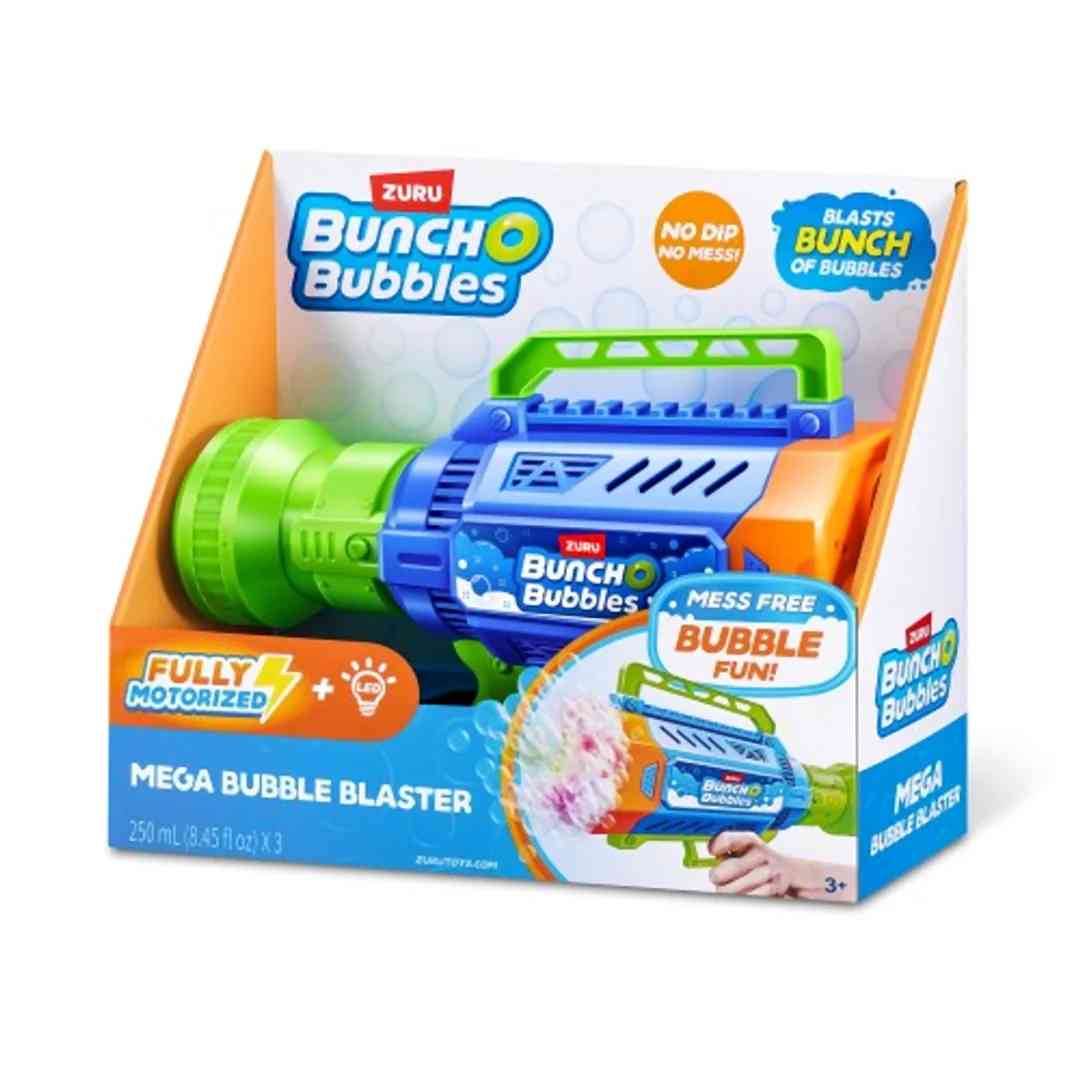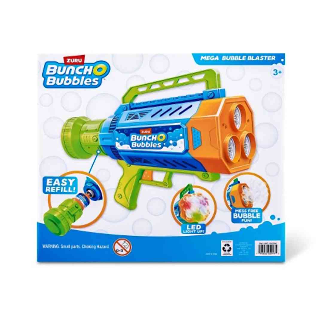 The Bunch O Bubbles Mega Bubble Blaster is a powerful motorized bubble gun that creates a massive stream of bubbles with every pull of the trigger. Designed for outdoor fun, it features a high-speed bubble blasting system that releases dozens of bubbles at once, filling the air with colorful, floating bubbles in seconds. Its easy-grip handle and lightweight design make it perfect for kids to enjoy continuous bubble play at parties, parks, and backyard games. Safe, durable, and simple to use, this bubble blaster guarantees endless bubbly excitement for children aged 3 years and above.