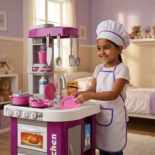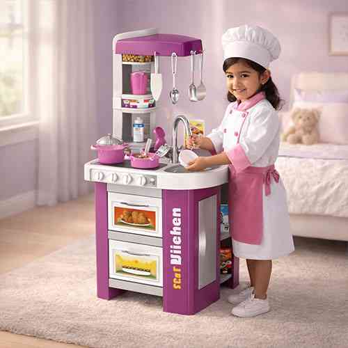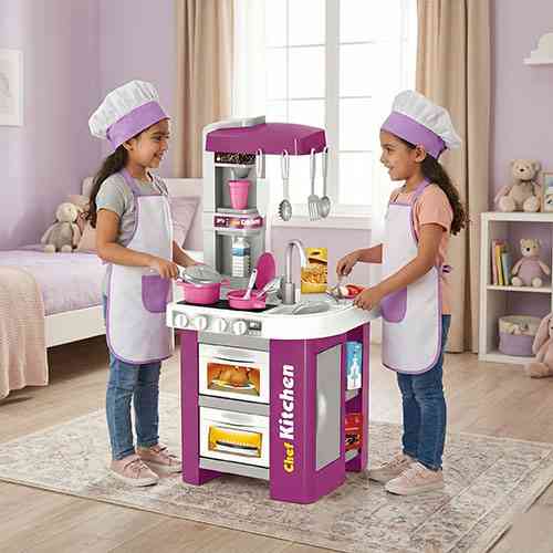 The Little Chef Kitchen! Let your child experience the joy of real cooking in her own world. An imaginative playset that turns playtime into a learning-filled adventure, nurturing sharing, attention to detail, and happy smiles.