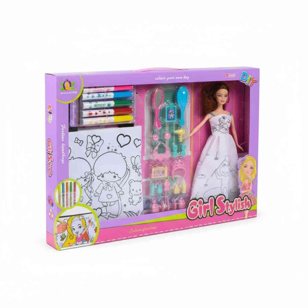 Designed to encourage creativity, self-expression, and fine motor skills, the Coloring Doll Set offers hours of engaging fun. Perfect for creative kids who love arts and crafts, it makes a great gift for home or playtime with friends.