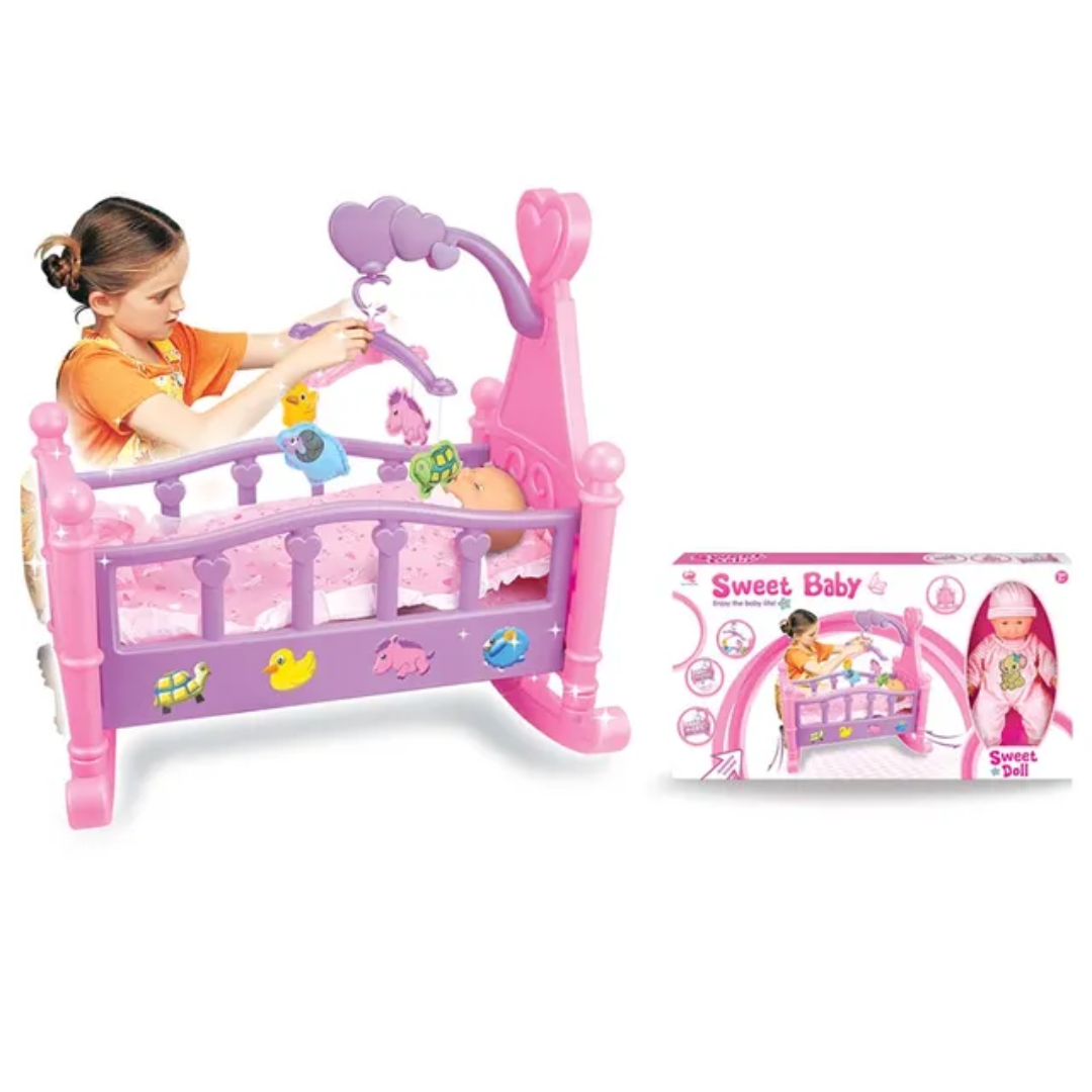 Comfy doll crib with a cute bag — perfect for sleep and travel play.