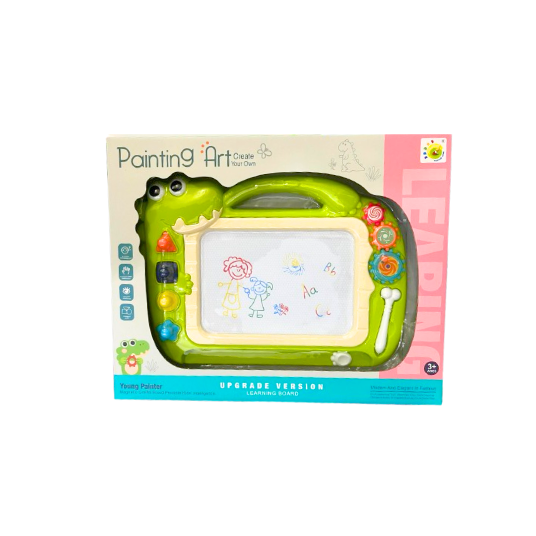 Creative magnetic drawing board with stamps, drawing tools, and easy-erase slider.