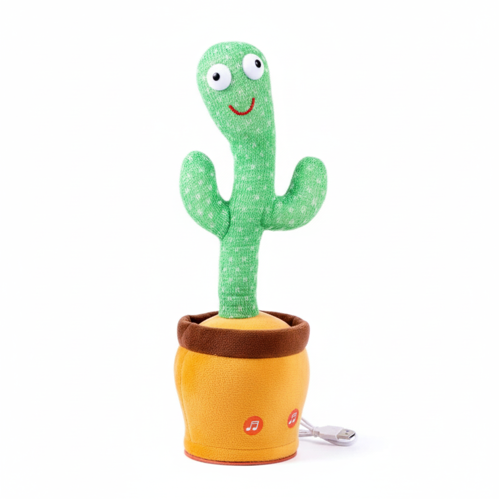 The Dancing Cactus Talking and Singing Toy is a fun, interactive electronic plush toy that brings joy and laughter to both children and adults. Designed to entertain, this adorable cactus can dance, sing cheerful songs, repeat what you say in a funny voice, and light up with colorful LED effects.
