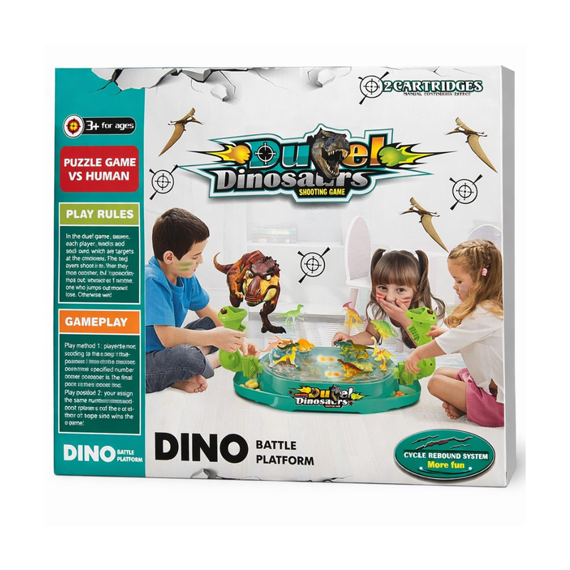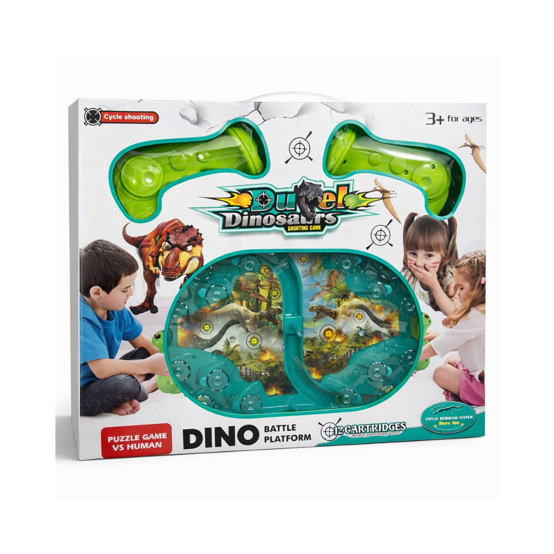 Dino Duel Shooting Game is a fun interactive target shooting set for kids, featuring moving dinosaur targets and safe foam ball blasters. The rebound system adds extra challenge and excitement while helping develop focus and hand-eye coordination. Suitable for solo play or two-player competition. Recommended for ages 3+.