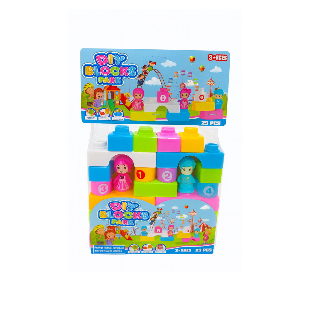 Large 96-piece block set with colorful bricks and character figures. Park-themed design.