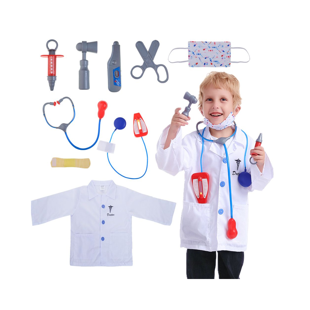 Doctor Costume and Playset – White. Complete role-play outfit with medical accessories, perfect for kids to enjoy imaginative play.