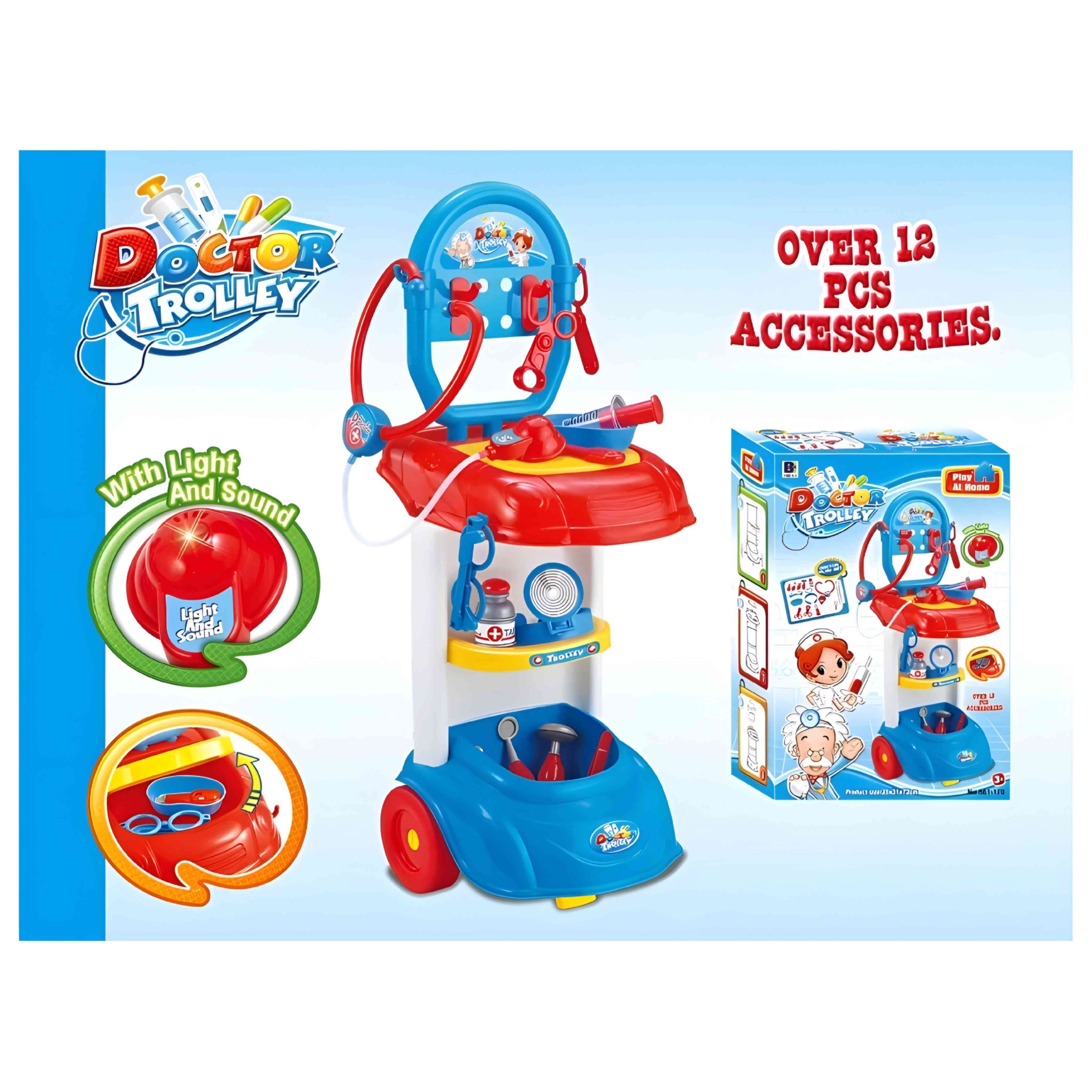 The Doctor Trolley Play Set is a fun and interactive toy for kids aged 3 and up! It includes a variety of medical tools stored in a rolling trolley, perfect for little ones to play doctor and care for their patients. Safe, portable, and full of imaginative fun!