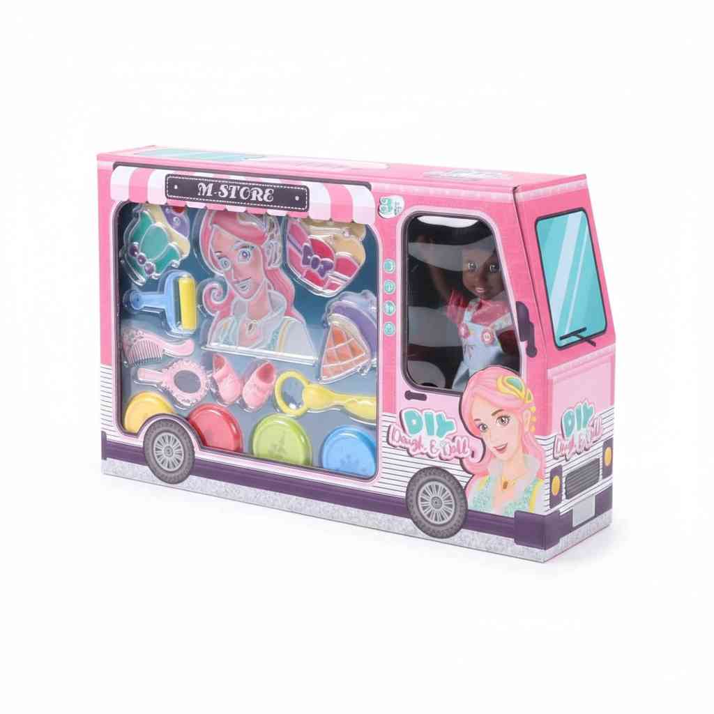 A fun doll playset that comes with colorful modeling clay and accessories for creative styling and pretend play. Kids can shape, decorate, and design while playing with the doll, encouraging imagination and fine motor skills.