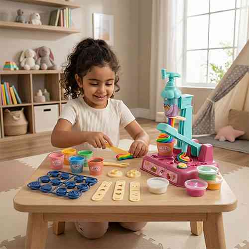 The Ice Cream & Clay Machine is a fun creative playset that lets kids design the cutest ice-cream cups and cupcakes in their favorite colors, developing their fine motor skills and imagination while crafting realistic dessert shapes.