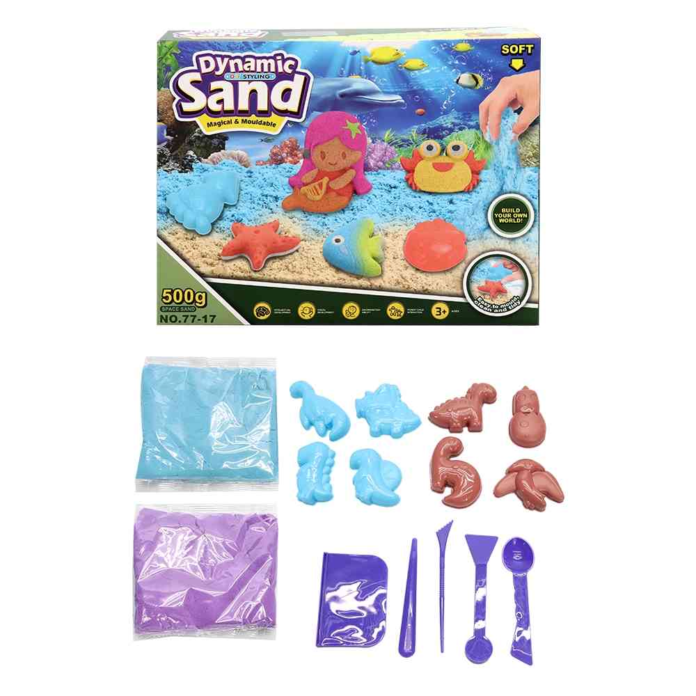 Let your child build their own underwater world with this magical mouldable sand! Soft, smooth, and easy to shape, this sand flows through the hands and holds its form perfectly in the included sea-themed molds like fish, starfish, crab, and mermaid.