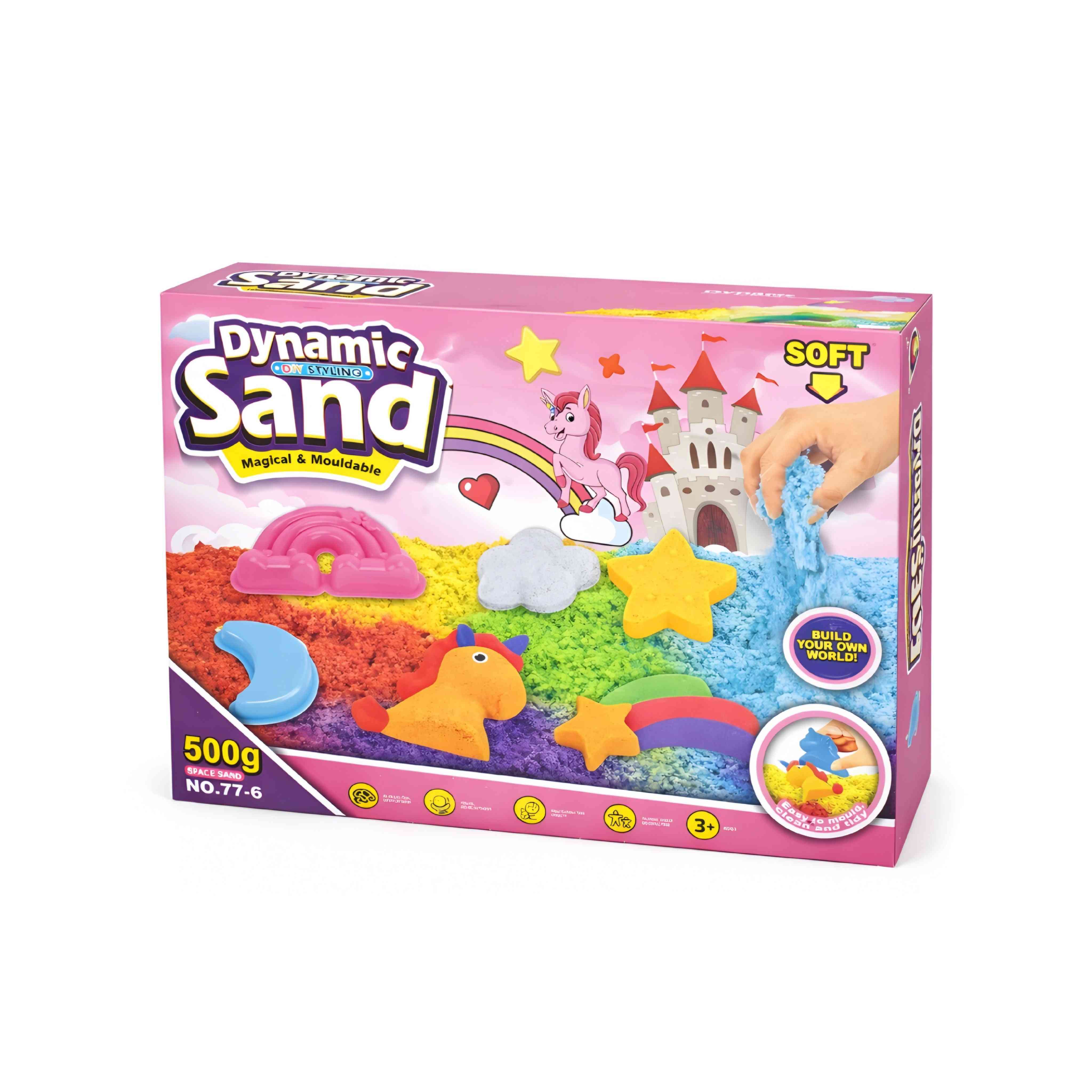 Step into a magical world of imagination with this mouldable sand set ,The soft sand flows smoothly through the hands and holds its shape perfectly to create delightful fantasy shapes.