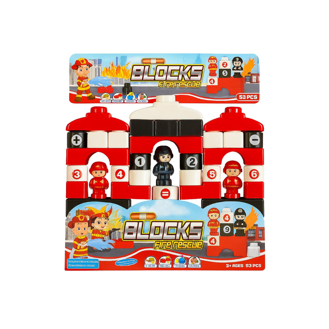 Exciting 53-piece firefighter building block set with fire station, fire truck, and firefighter figures.