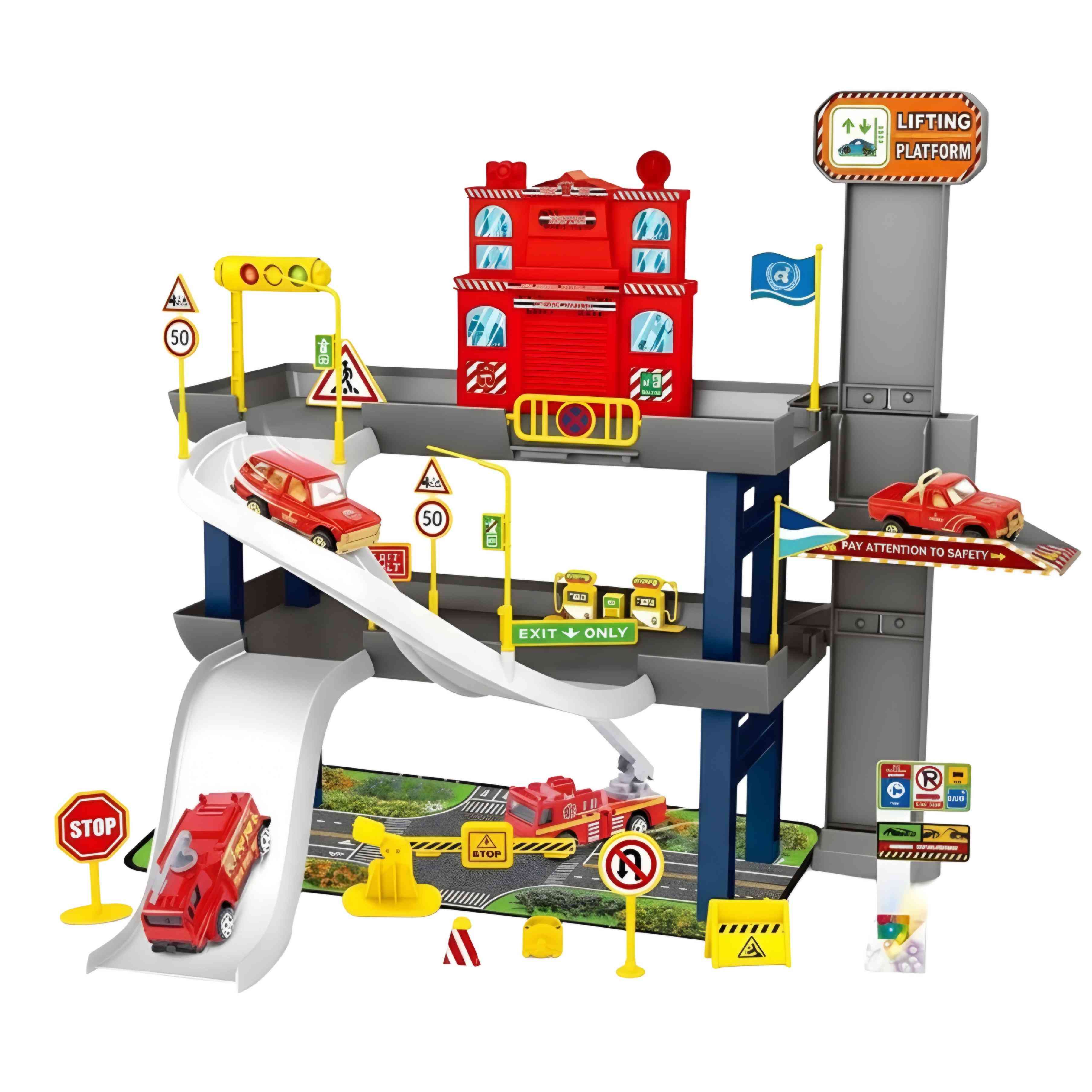 The Fire Fighting Parking Garage Play Set is perfect for little heroes! This exciting set features a multi-level parking garage, fire trucks, and accessories to create thrilling rescue missions. It encourages imaginative play and helps develop problem-solving and motor skills, offering endless fun for kids!