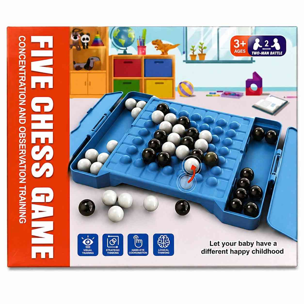It is a board game for two players, where players take turns placing black and white pieces on the board with the goal of forming a straight line (horizontal, vertical, or diagonal) of five consecutive pieces of the same color.