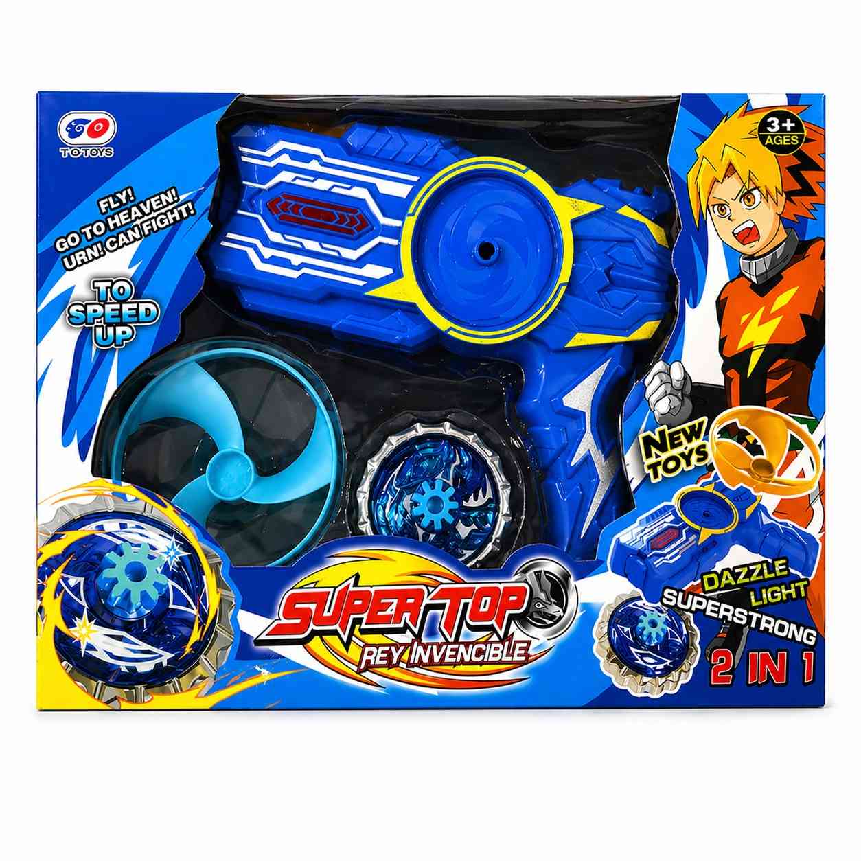 Flying Spinner Launcher Toy – Fast Spin with Light (2 in 1) - Blue