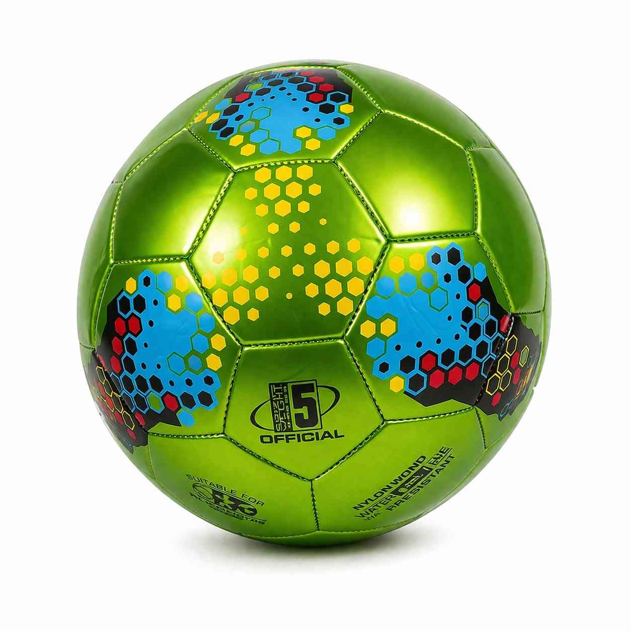 This Kids Football features a shiny, colorful design that makes playtime more exciting both indoors and outdoors.
