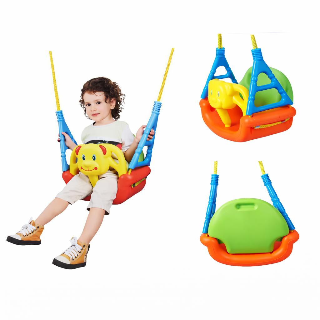 Made from durable, high-quality plastic with strong hanging ropes and easy-grip handles, this swing is ideal for gardens, balconies, or indoor play areas. Its bright colors and friendly design attract children and encourage active play, balance, and coordination. Easy to install and lightweight, it is a perfect addition to any home playground.