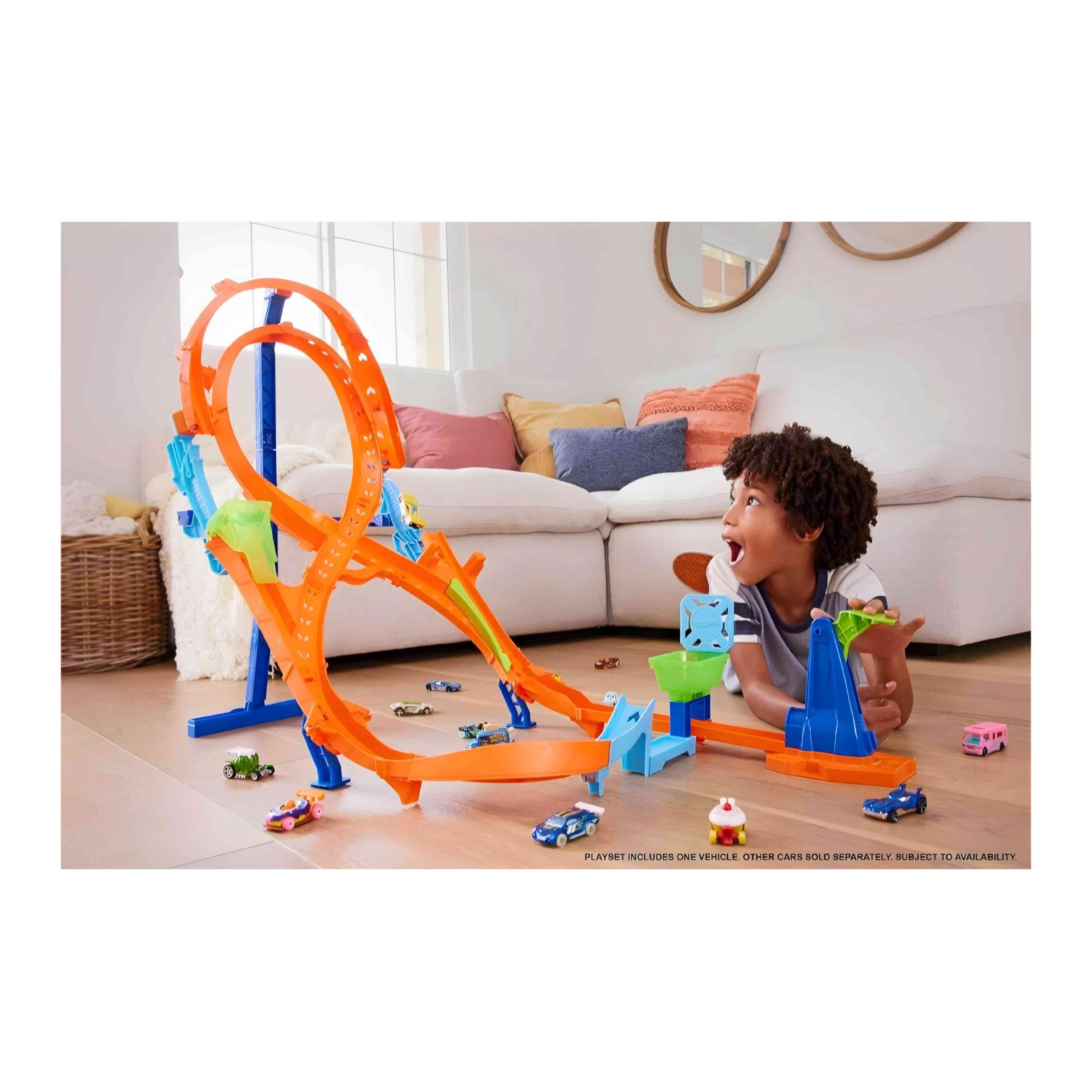 The Hot Wheels Action Vertical-8 Jump track set is an exciting and thrilling toy for kids that allows them to race and perform stunts on a two-foot tall vertical track. This track set features two different paths that kids can choose from, each with its own unique features and challenges.