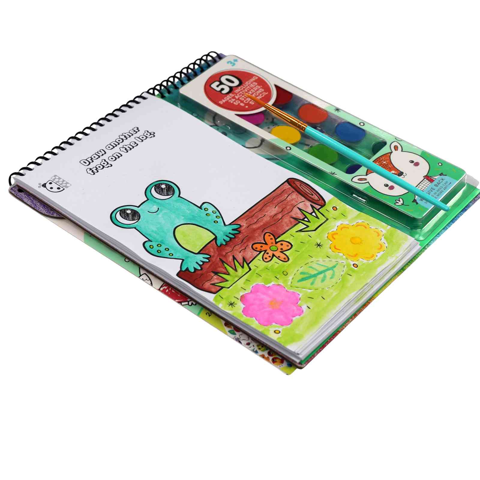 Let your child explore creativity anywhere with this all-in-one portable art activity pad! Featuring 50 pages packed with coloring sheets, fun activities, and adorable stickers, plus a watercolor set, paintbrush, and stencil to help kids learn basic drawing skills with ease.