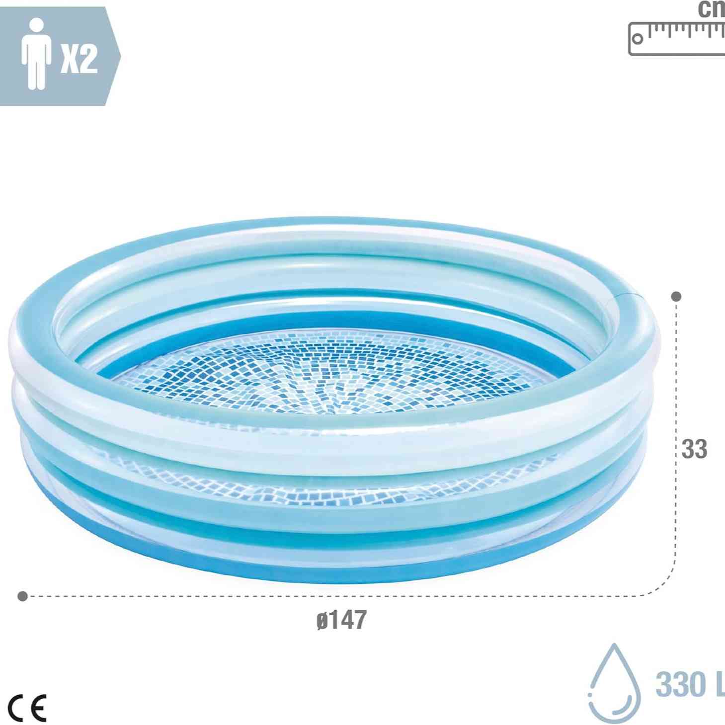 Measures 1.47 m × 33 cm, providing a safe, shallow space for little ones to enjoy water play and relaxation.