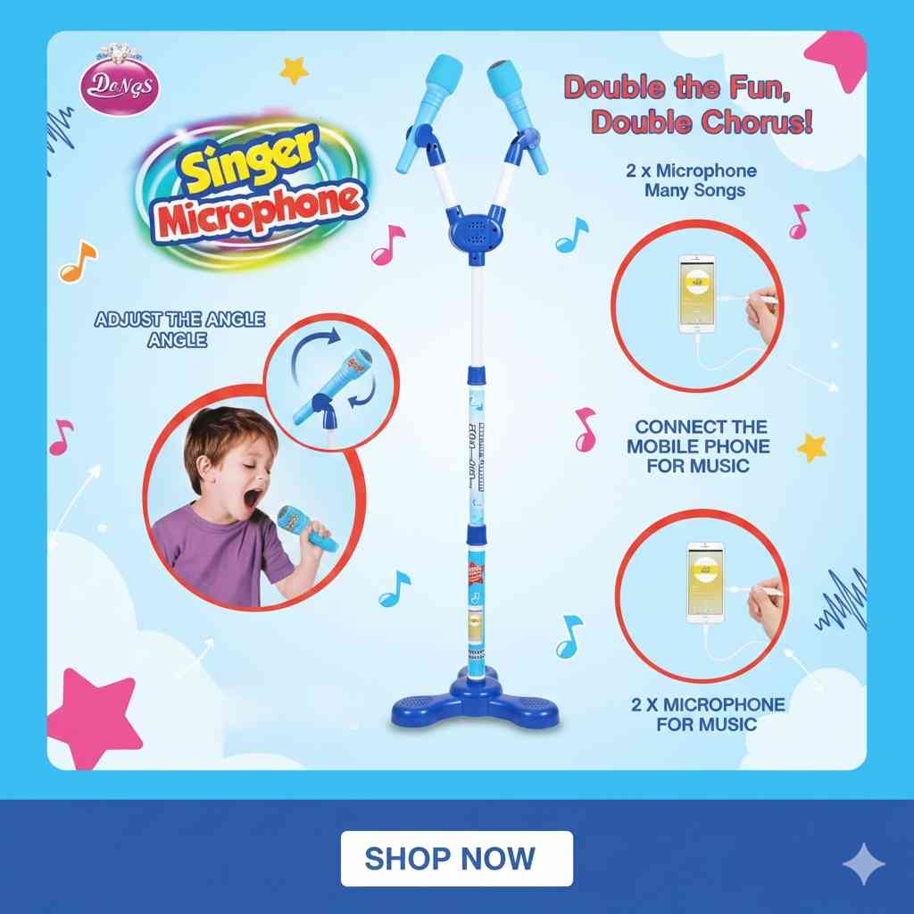 Unleash your child’s inner superstar with the Kid Star Dual Microphone! Perfect for young performers, this set features two microphones that allow children to sing, perform duets, and showcase their creativity.