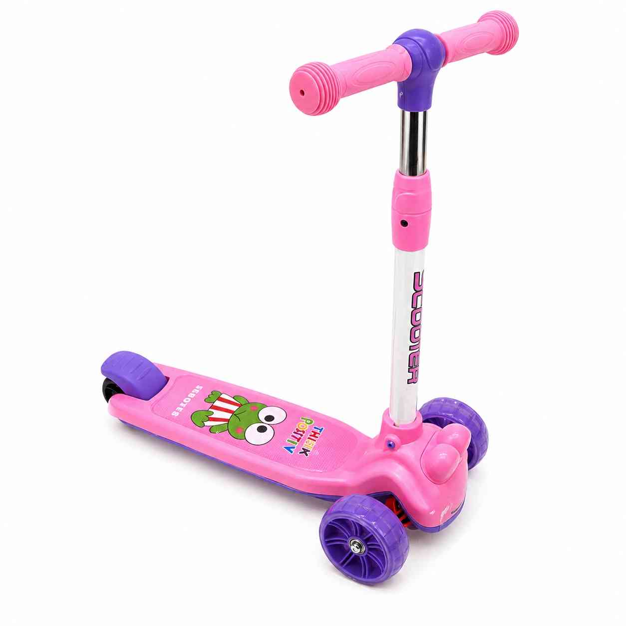 This cartoon-style 3-wheel scooter is designed to attract kids and give them a safe riding experience.