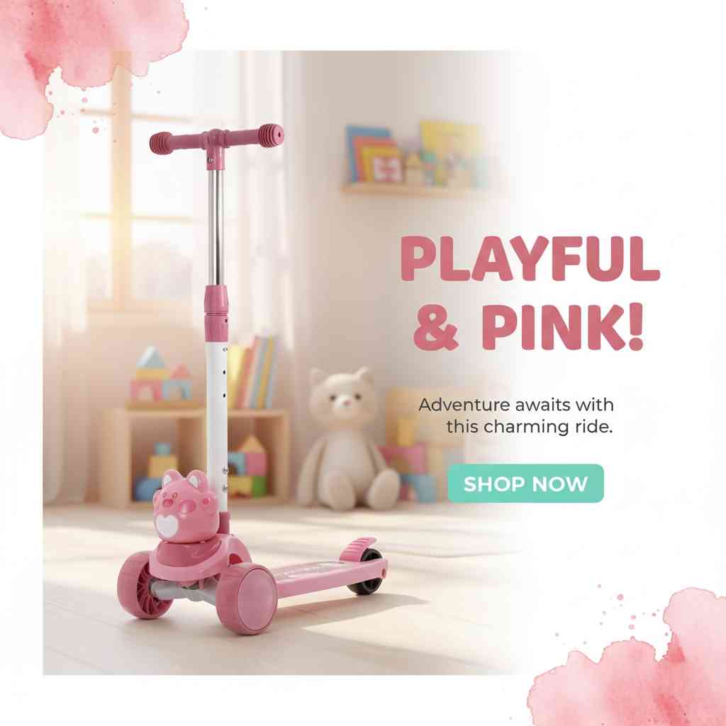 A fun kids scooter featuring an adorable bear character front with smooth and easy control for a comfortable ride. Comes with lights and music to make every ride more enjoyable and exciting for little riders.