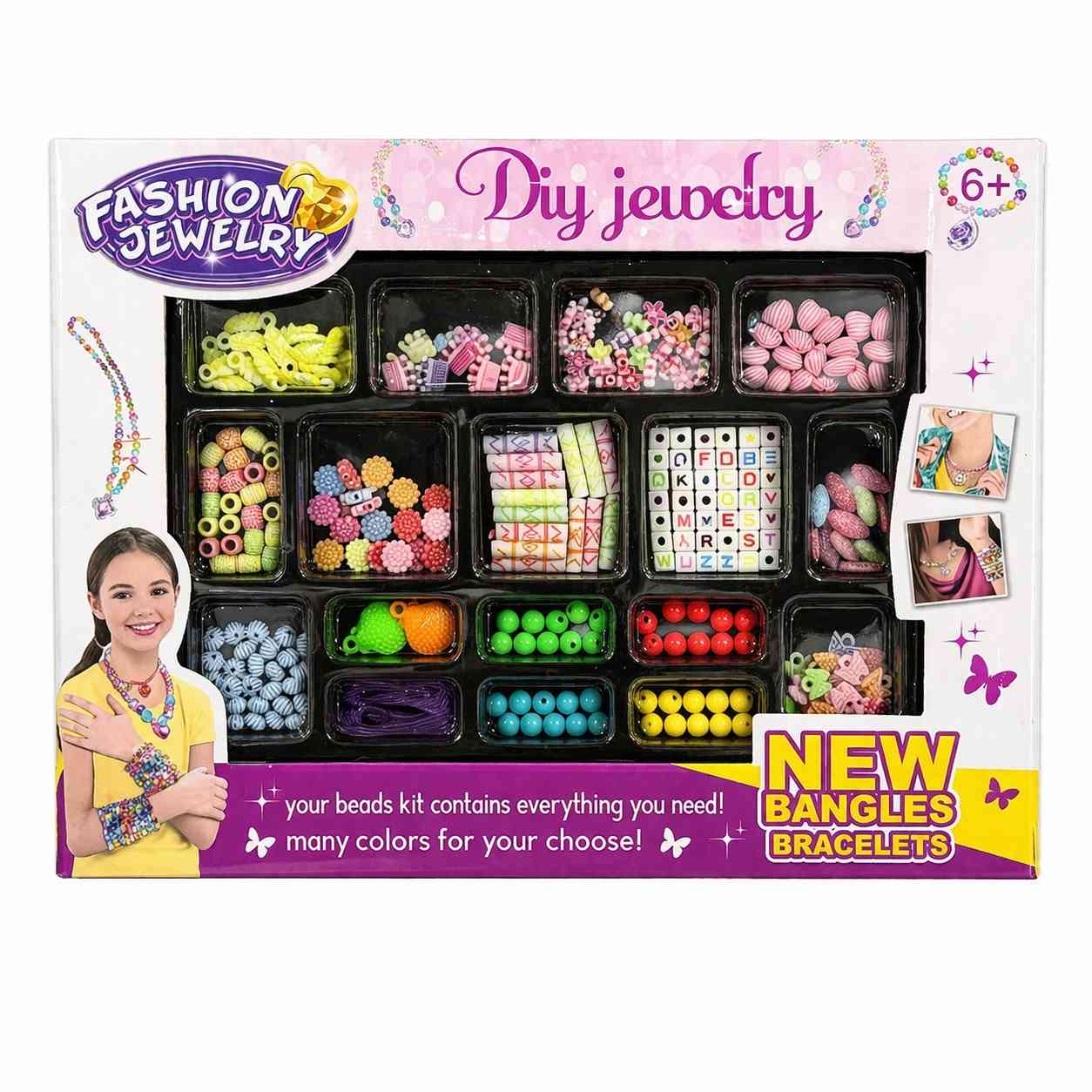 This DIY Jewelry Kit includes colorful beads and accessories to create bracelets, necklaces, and more.