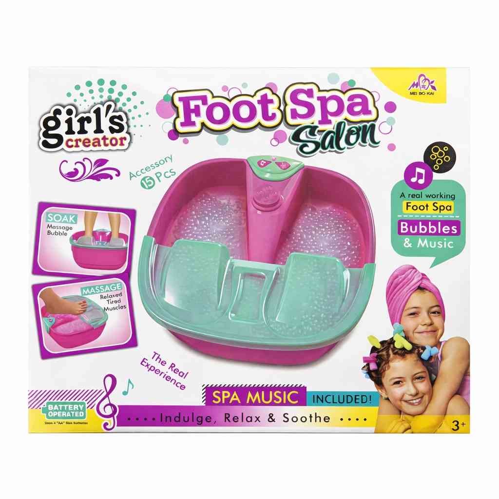 This Kids Foot Spa Salon Set combines bubbles, massage, and music for a fun and relaxing playtime!