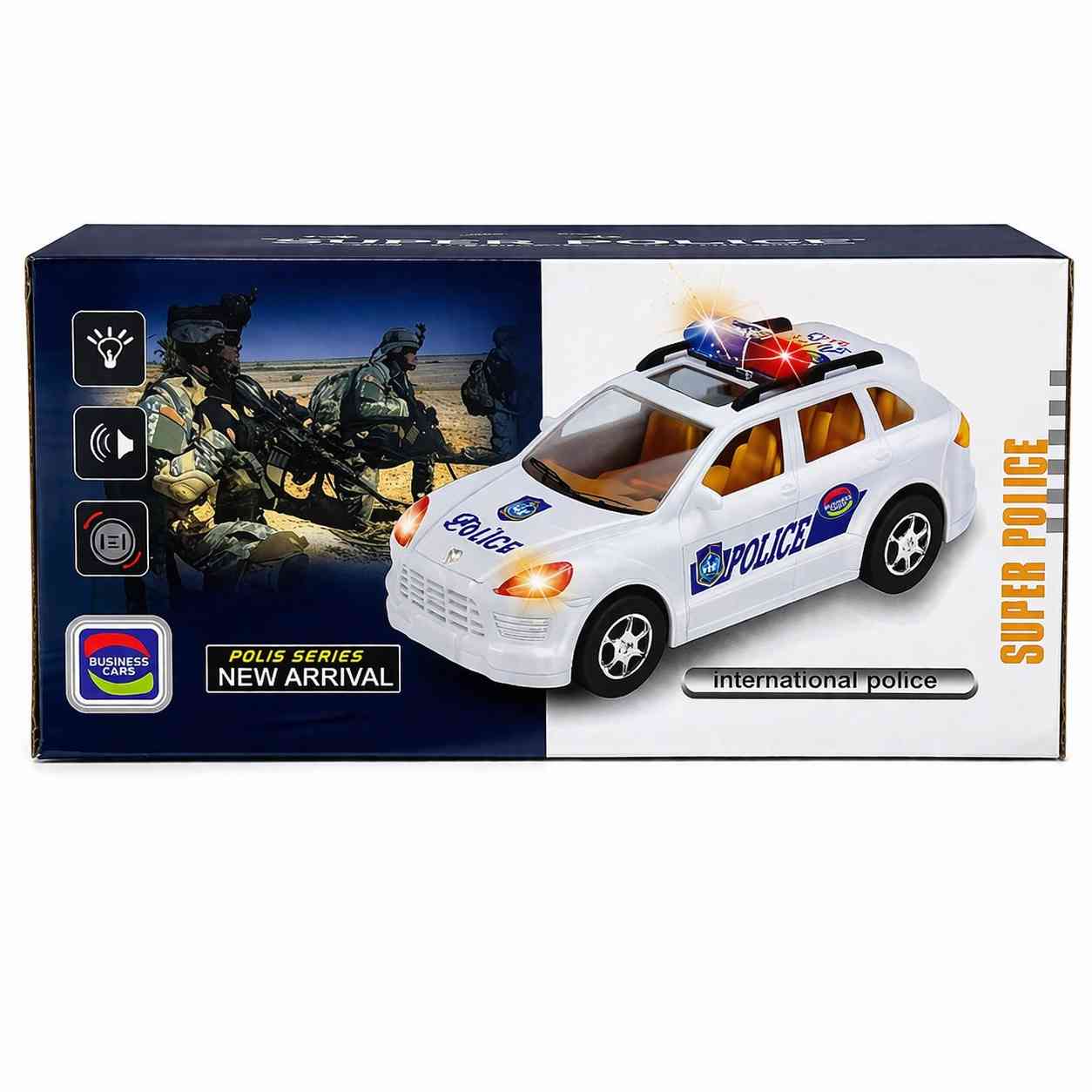 This police car toy moves on its own with lights and realistic sounds!