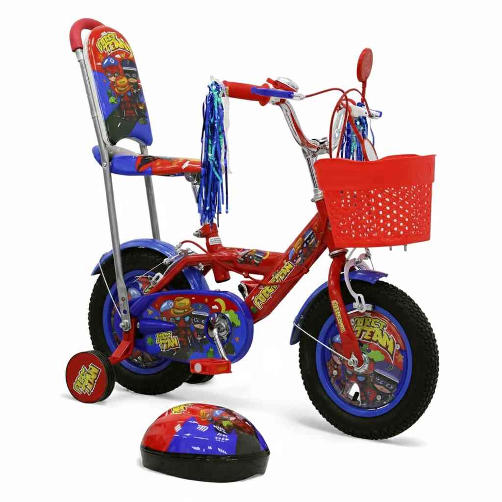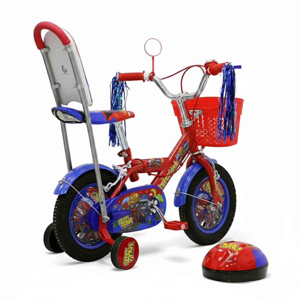 Kids Red Bicycle with Basket, Backrest & Helmet