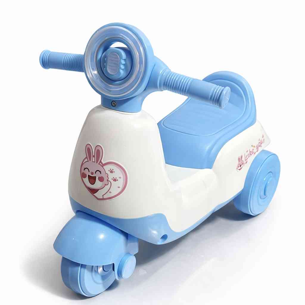 This Kids Ride-On Scooter – Cute Bunny Design (Blue) features an adorable bunny-themed design that makes playtime exciting for toddlers.