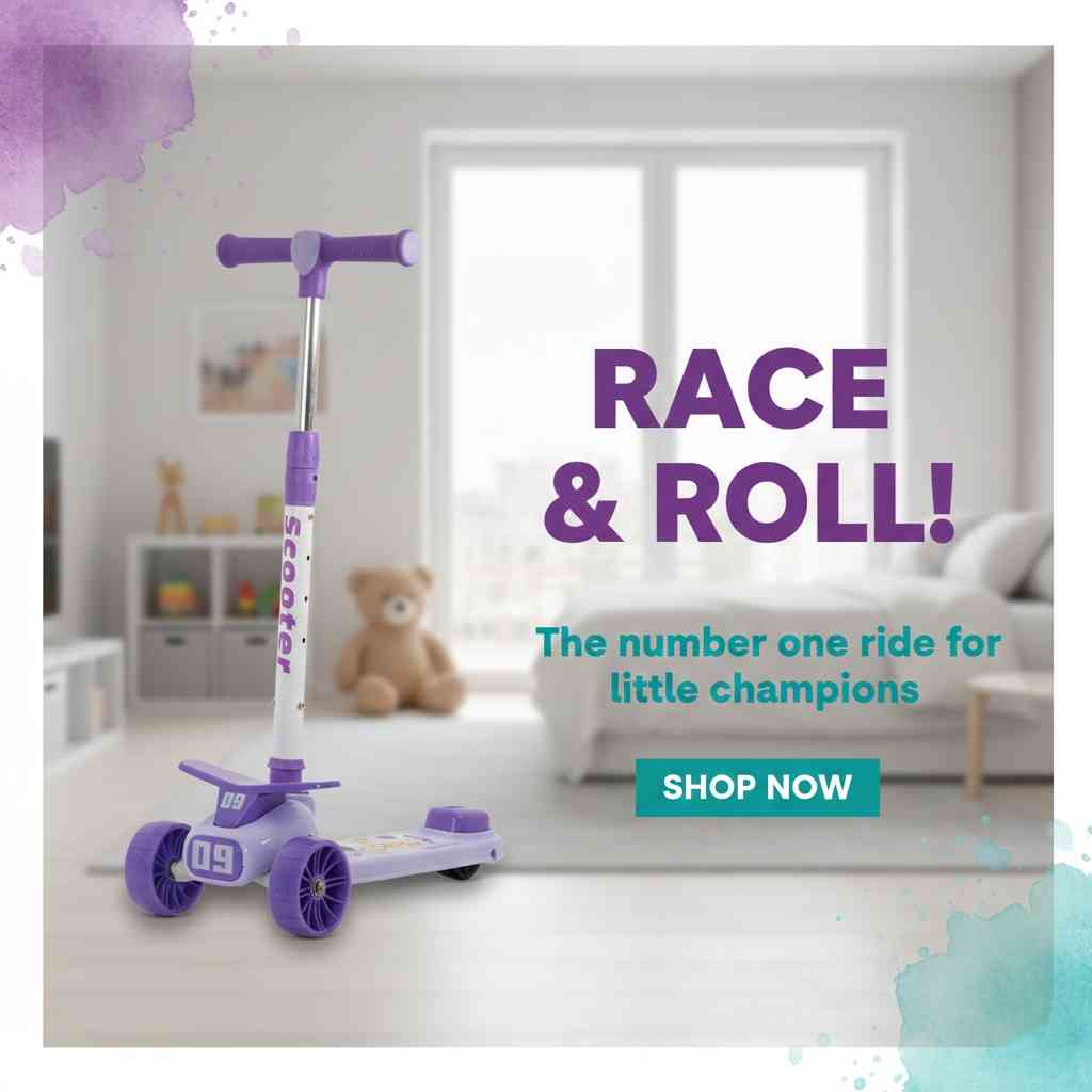 A sporty-designed kids scooter featuring a stable three-wheel base for better balance and safety. Equipped with lights and music to make every ride more exciting. Perfect for active kids who love fun and movement.