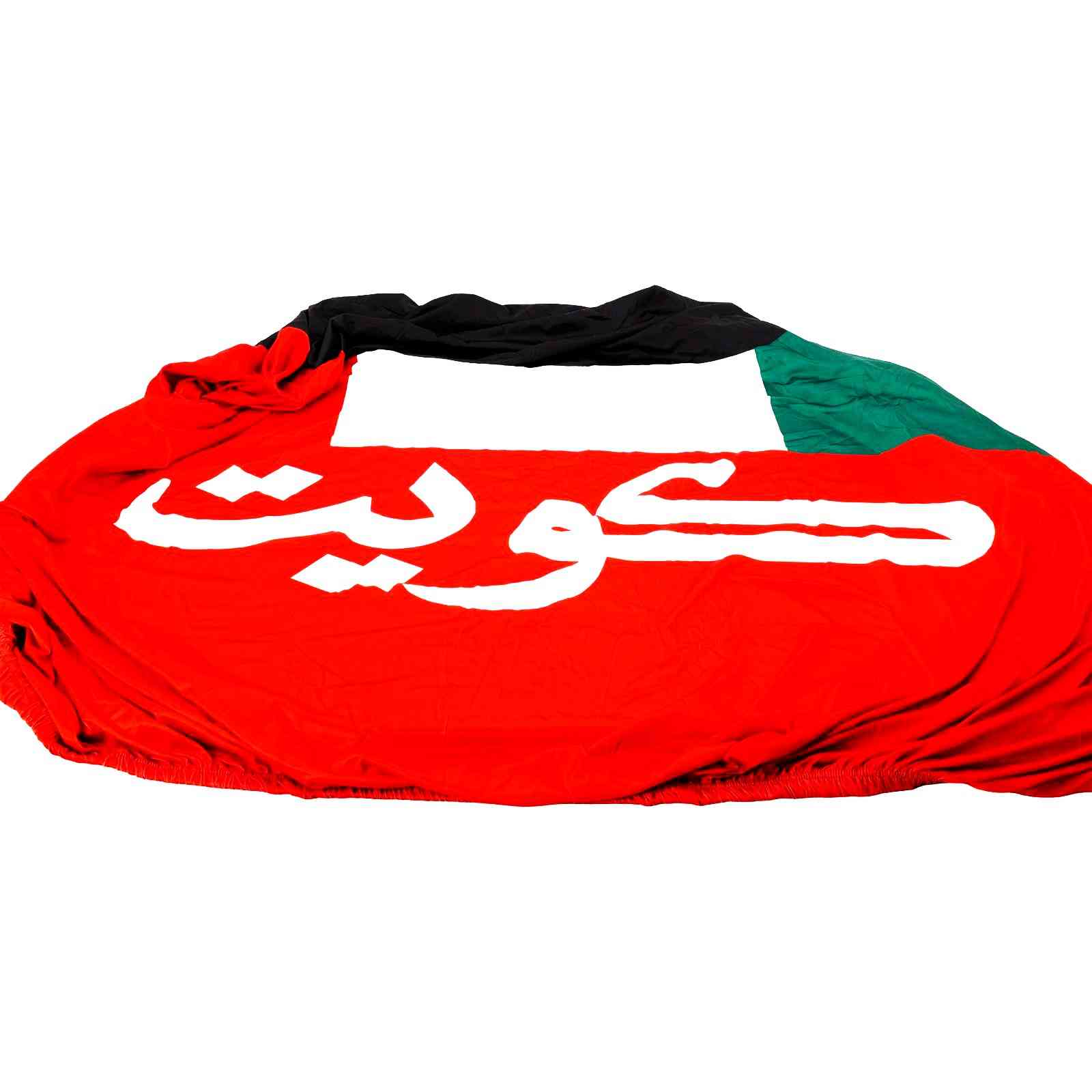 The cover features the iconic colors of the Kuwait flag with the word “Kuwait” written in elegant Arabic script, making it perfect for daily use or national celebrations. Elasticated edges ensure a secure fit and prevent slipping.